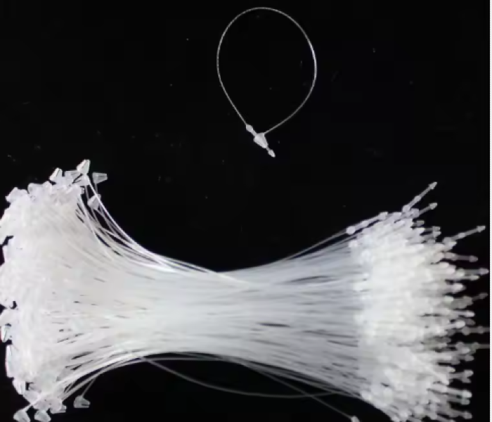 Bandes de serrage transparentes à fermeture encliquetable pour étiquettes.