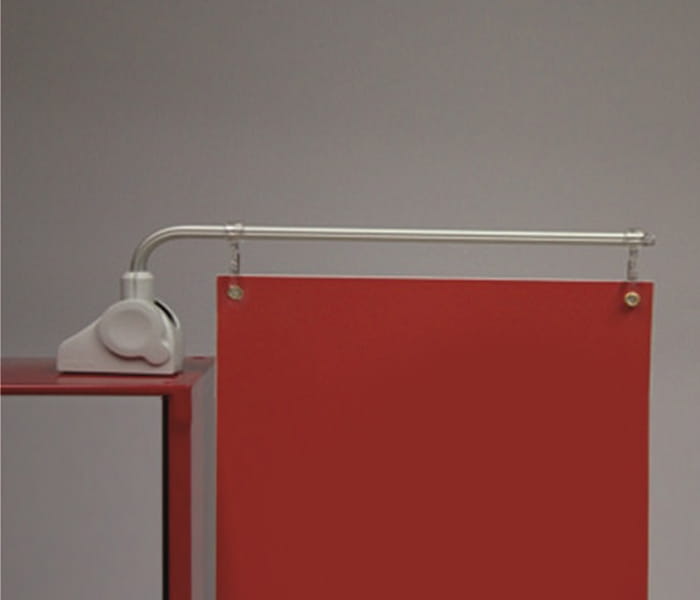 Bras mobile magnétique pour suspendre des bannières sur les étagères de magasin, équipé d’une base magnétique.