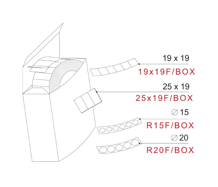 Carrés autocollants 19x19F/BOX, 350 pcs (1)