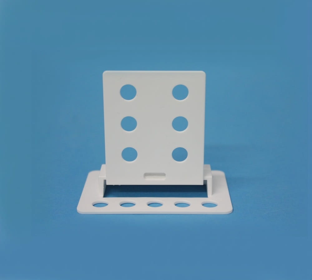 Support horizontal en deux parties “à emboîter”, conçu pour les étagères en carton utilisées dans les présentoirs ou displays.