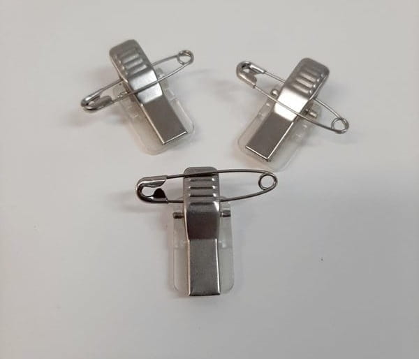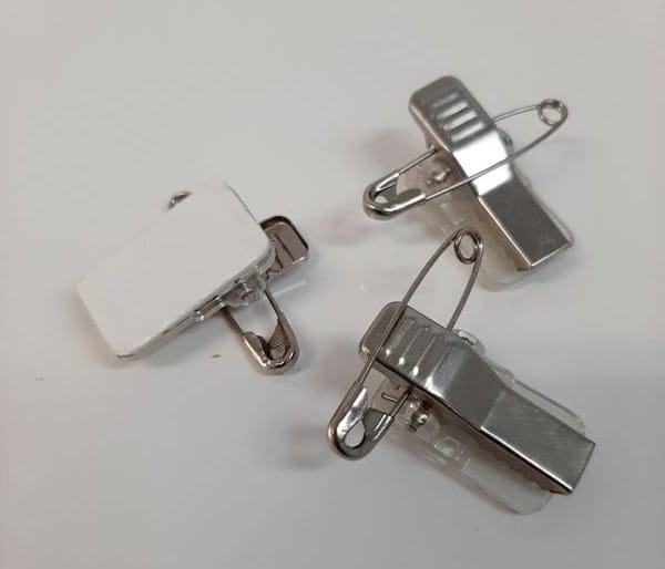 La pince avec épingle permet d’attacher le badge sur un vêtement en toute sécurité.