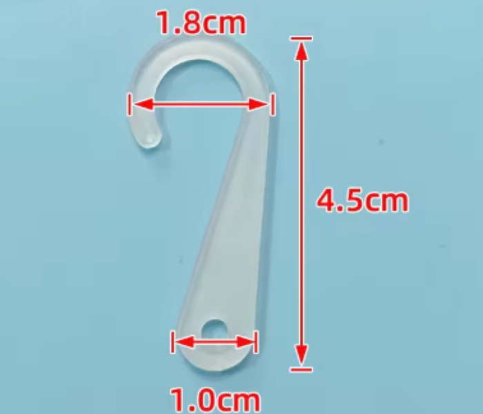 Crochet en plastique pour la suspension des marchandises, dimensions :