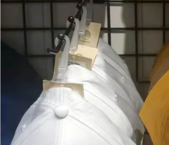 Crochet en plastique pour suspendre des produits.