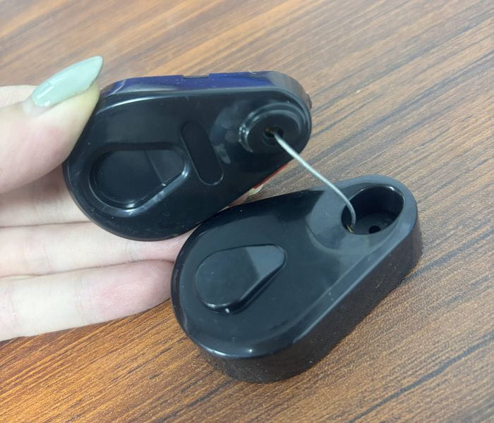 Dispositif antivol avec câble en acier enroulable sur bobine.