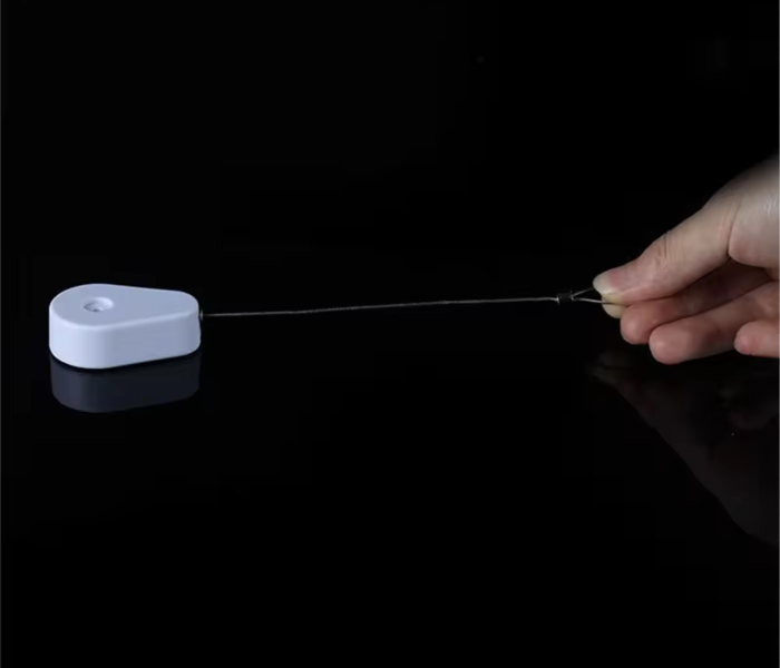 Enrouleur en forme de goutte, équipé d’une boucle lasso réglable.