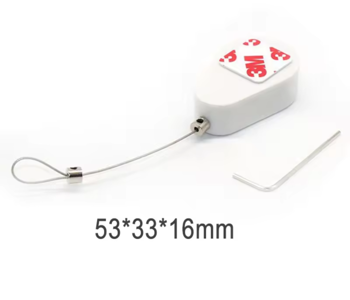 Mécanisme antivol avec câble de sécurité, couleur blanche.