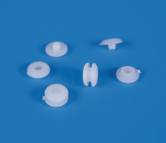 Rivet encliquetable en plastique blanc.