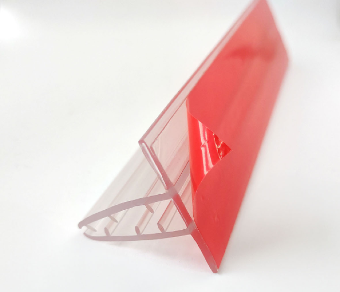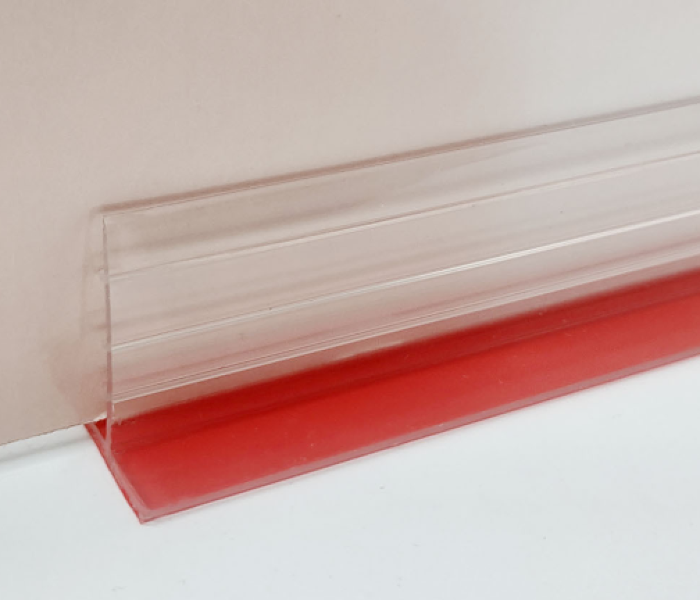 Grand support avec ruban gélifié transparent à la base pour fixation verticale des impressions.