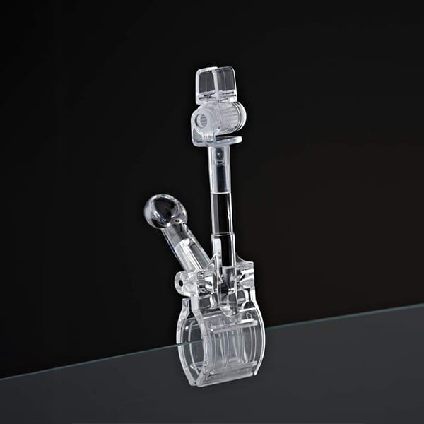 Pince transparente stable, idéale pour fixation sur présentoirs, paniers, différentes boîtes, etc.