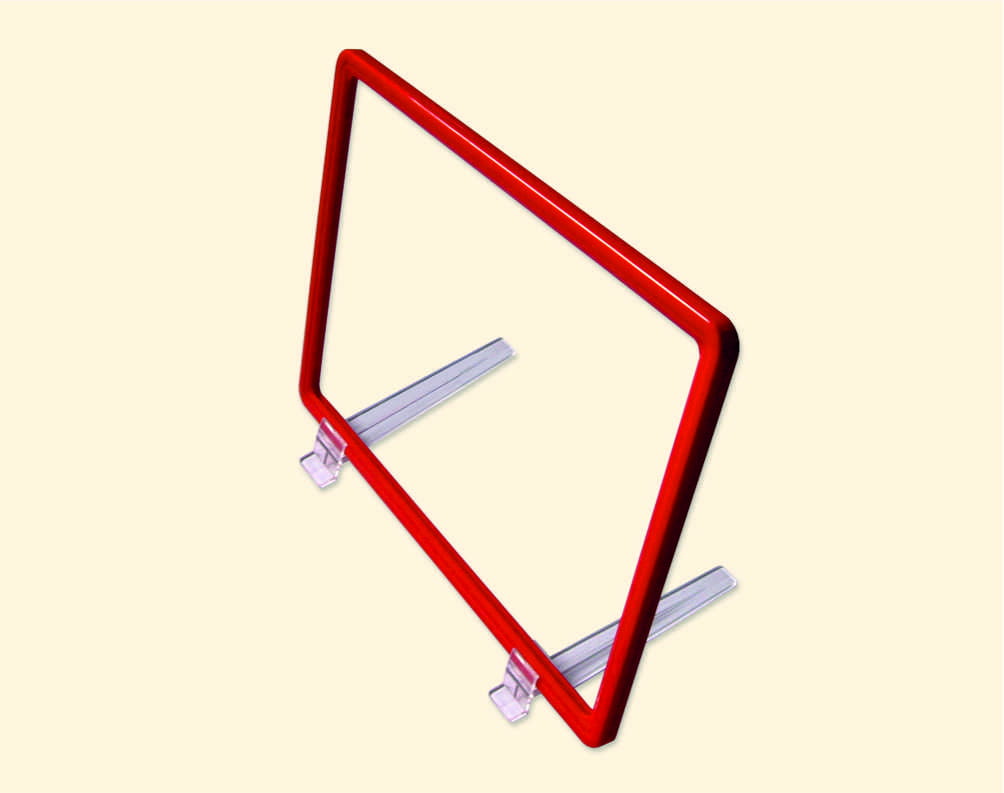 Support incliné pour poser un cadre en plastique.