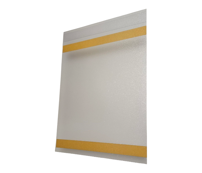 La pochette d’affichage se fixe à l’aide de deux bandes de ruban adhésif double face transparent.