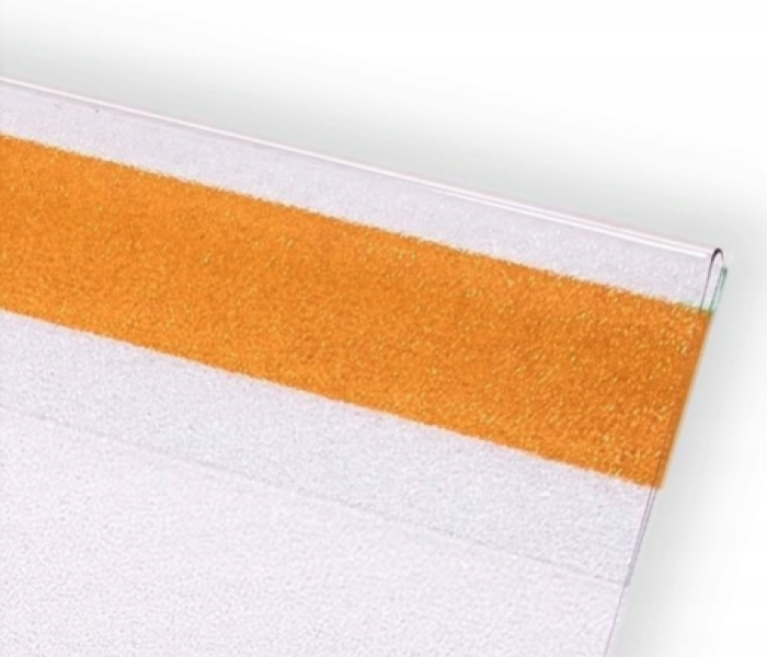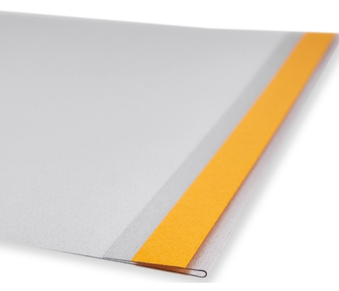 Pochette type “C” en PVC avec bande adhésive, orientation horizontale.