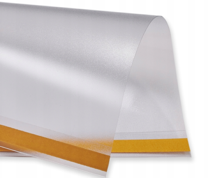 Pochette porte-affiche autocollante avec bande adhésive transparente.