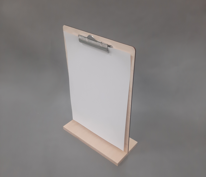 Présentoir de type "T" et support pour documents en un seul produit. Solution fonctionnelle.
