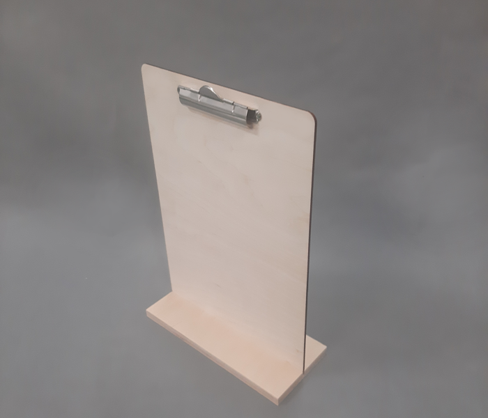 Matériau : contreplaqué naturel. Le présentoir est livré en kit à monter soi-même.