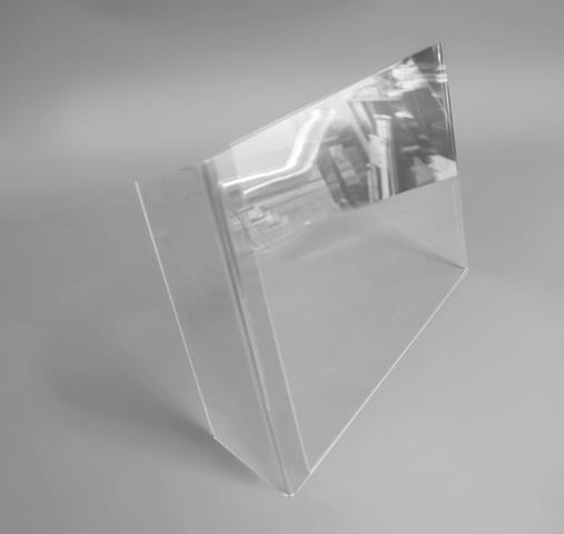 Présentoir publicitaire en plexiglas de type L, simple face.
