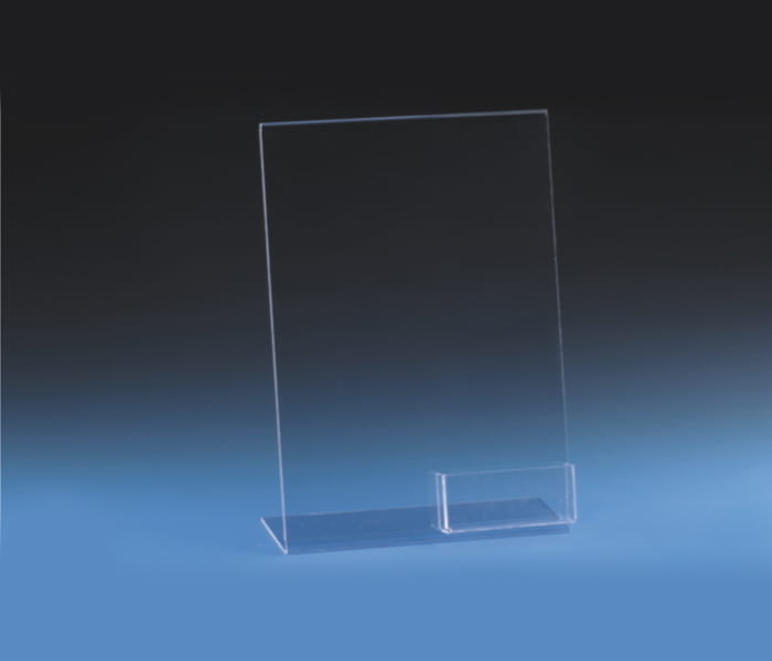 Présentoir publicitaire format A4 avec pochette pour cartes de visite.