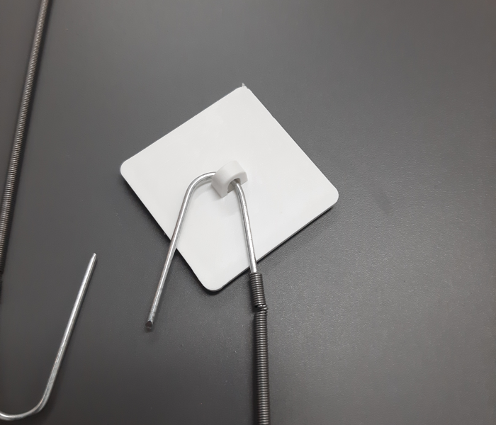 Le ressort s’étire sous le poids du matériau suspendu. Une fois étiré, il ne revient pas à sa longueur initiale.