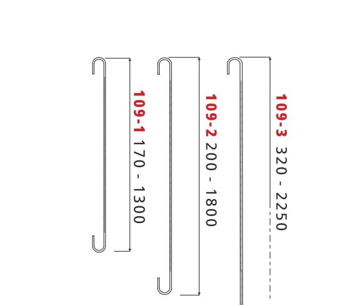 109-3 (long. de 320 à 2250 mm, charge max. 1 kg), emballage de 25 pièces