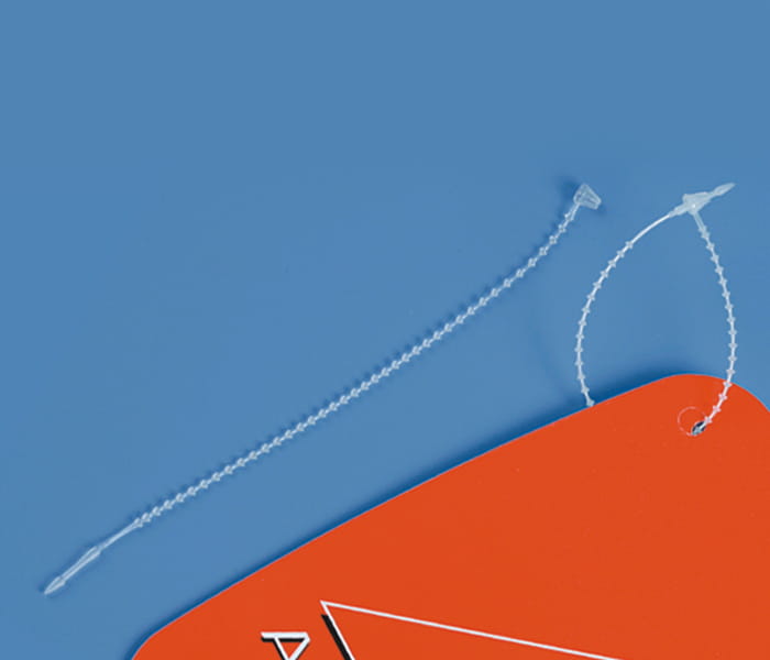 fixer un produit en passant la sangle dans le trou de l’étiquette,