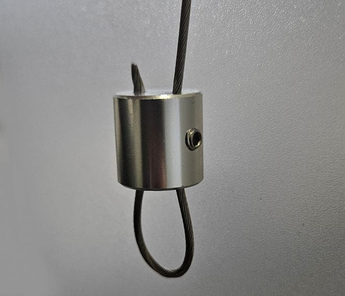 Support de serrage pour former une boucle sur un câble en acier (Ø du câble 1–2 mm).