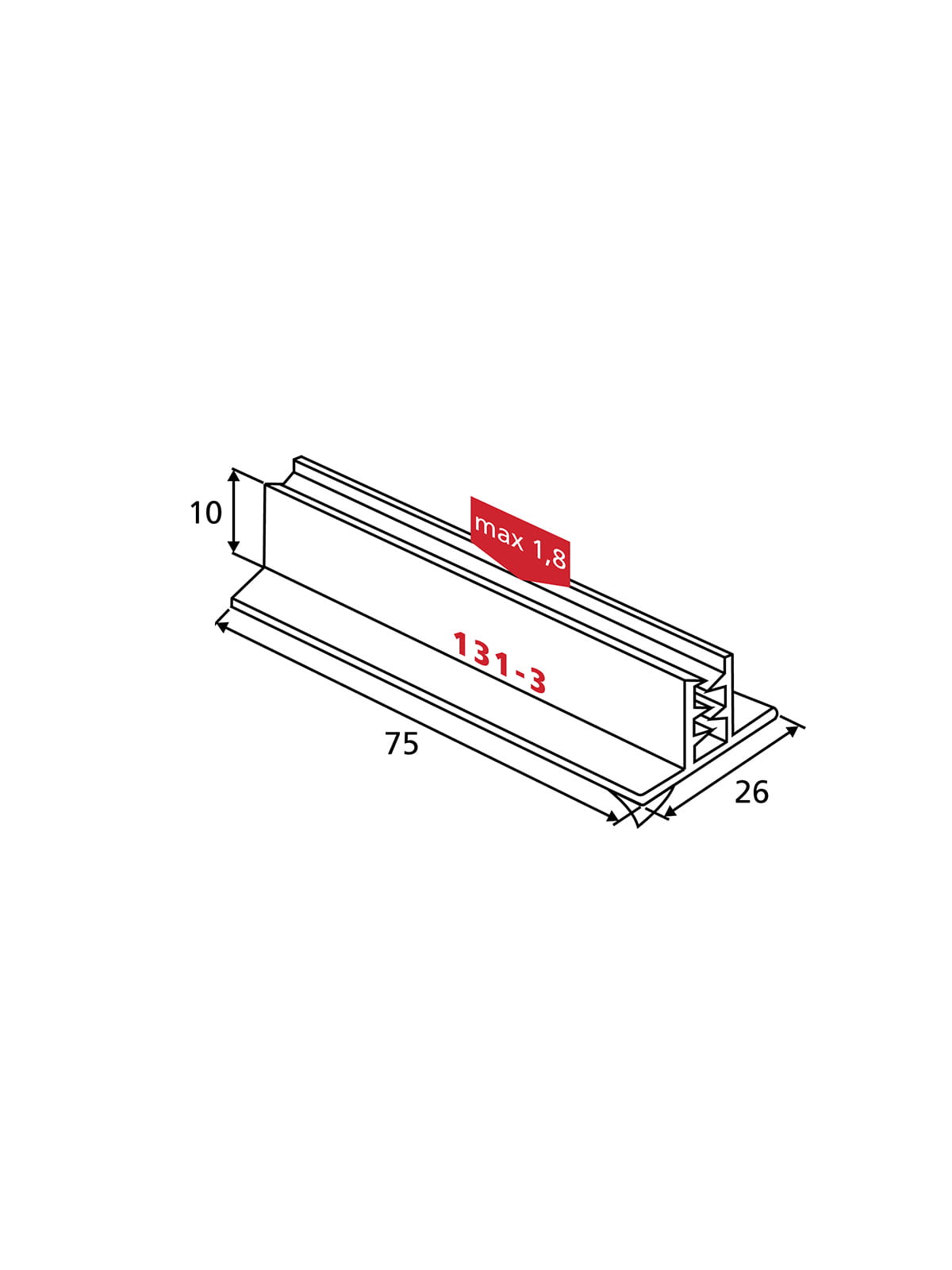 Dimensions de la base : 75 x 26 mm