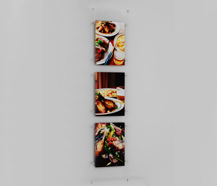 Système à câbles pour fixation entre le plafond et le sol.