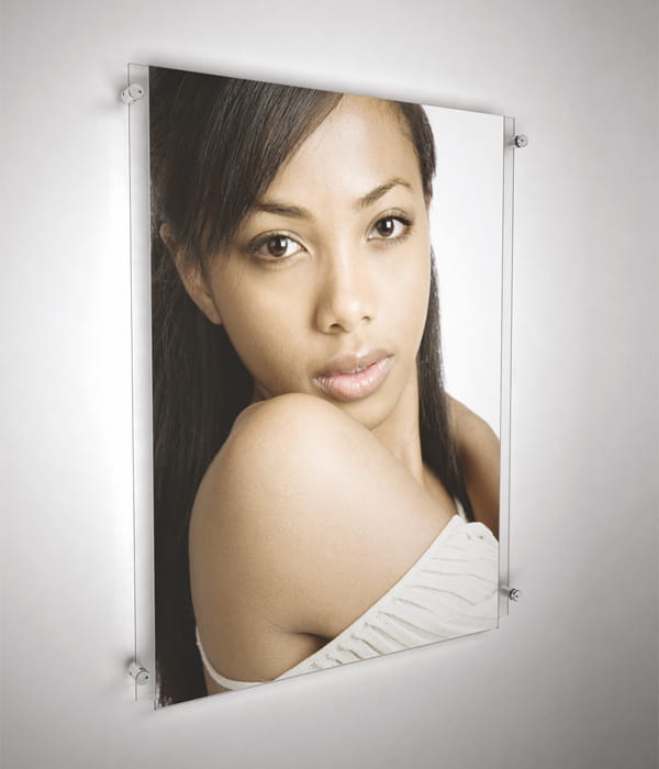 Cadre mural en plexiglas pour affiche A1 avec entretoises latérales.