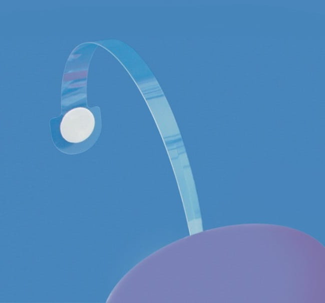 Tiges pour wobblers publicitaires avec ruban adhésif transparent à une extrémité et ruban mousse à l’autre.